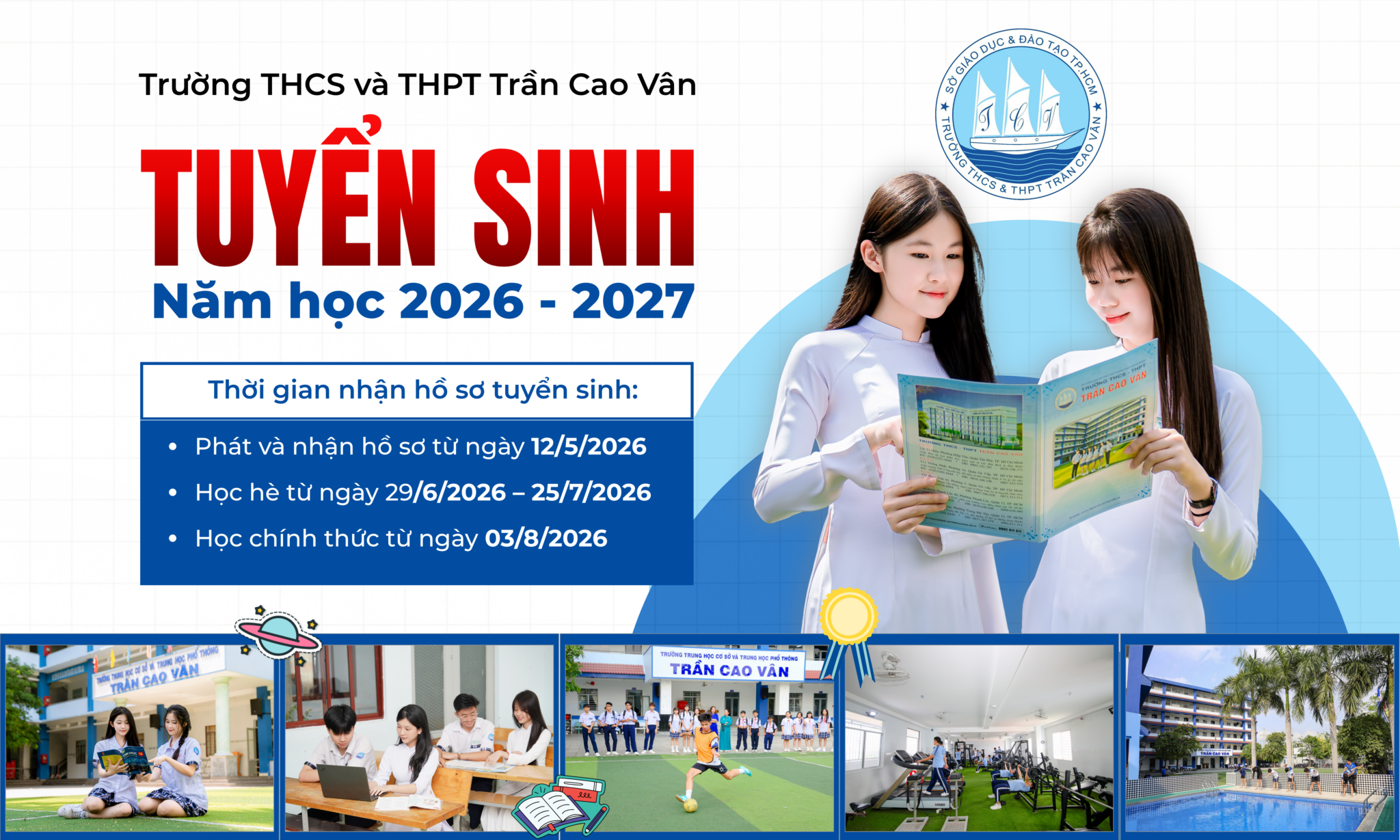 TRƯỜNG THCS-THPT TRẦN CAO VÂN TUYỂN SINH NĂM HỌC 2026-2027 Từ lớp 6 đến lớp 12 Hình thức tuyển sinh: không cần thi tuyển...